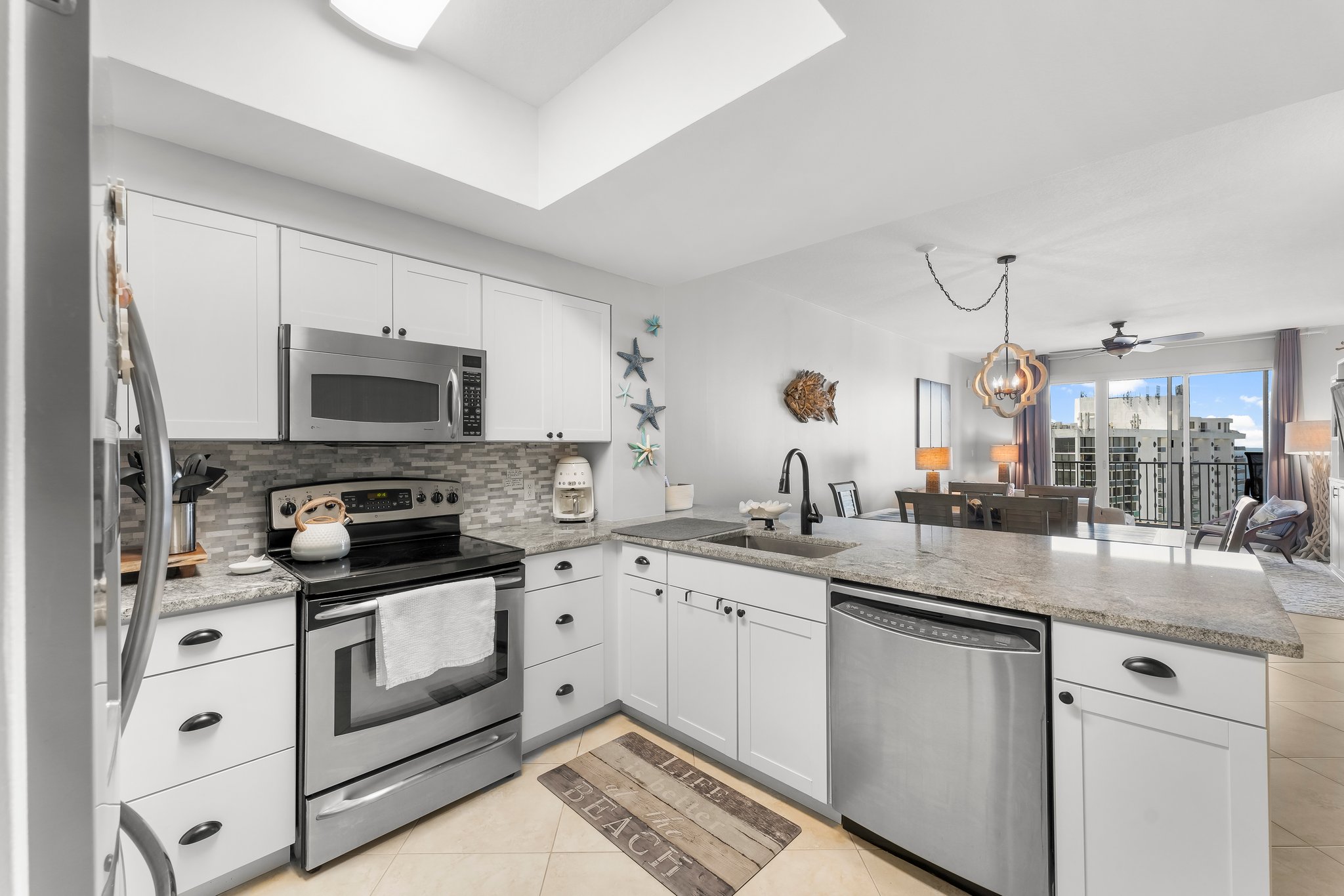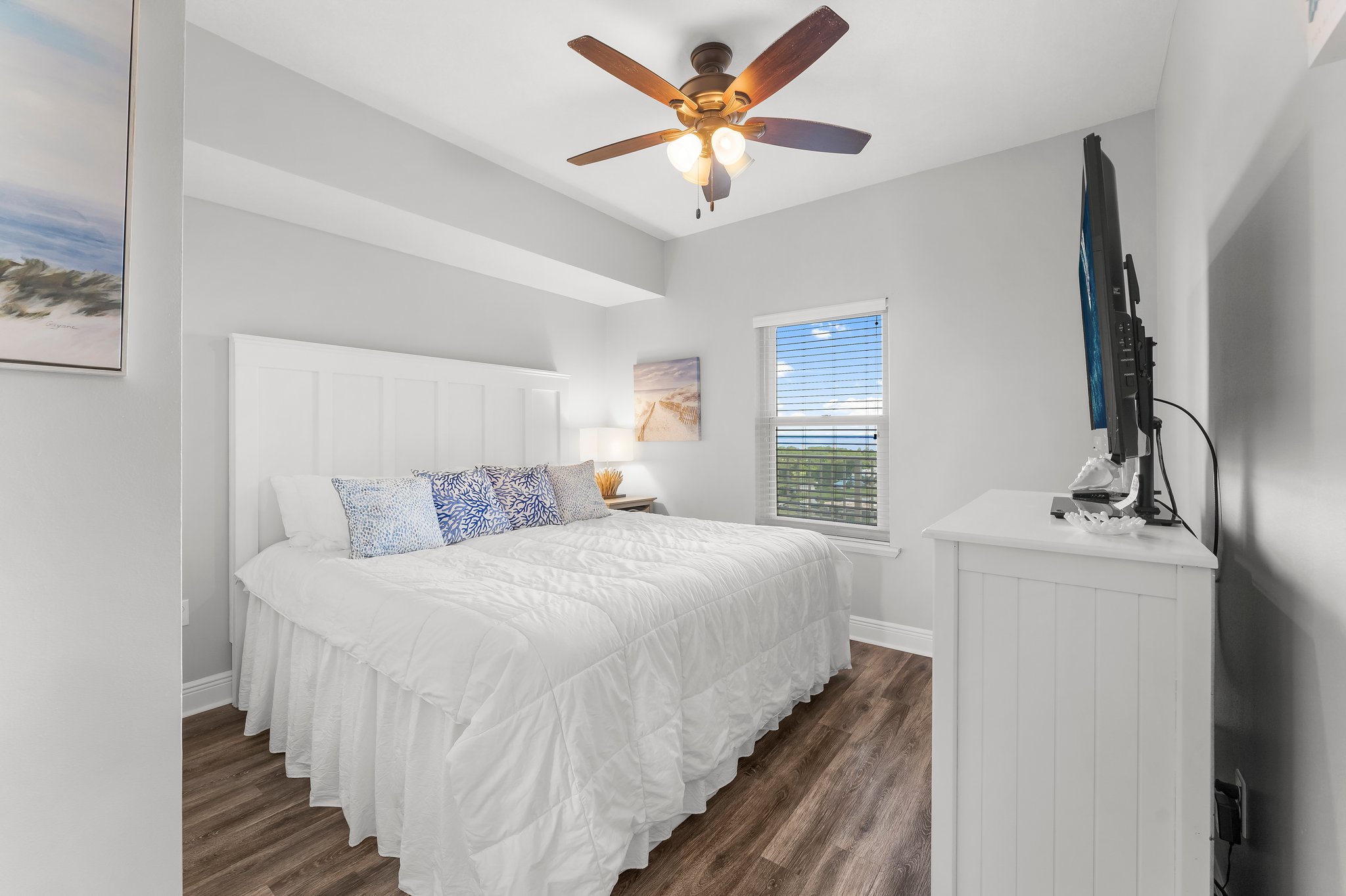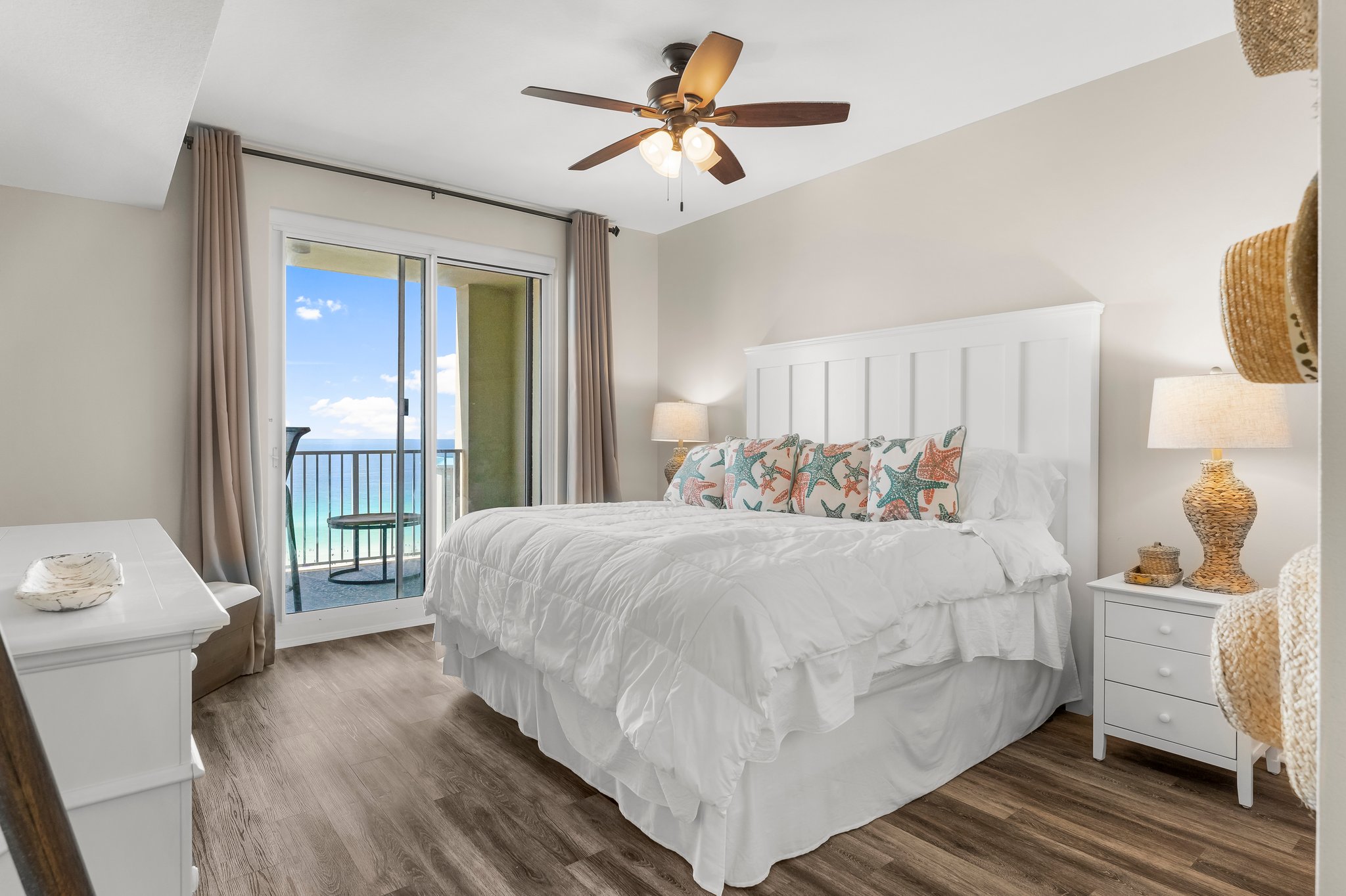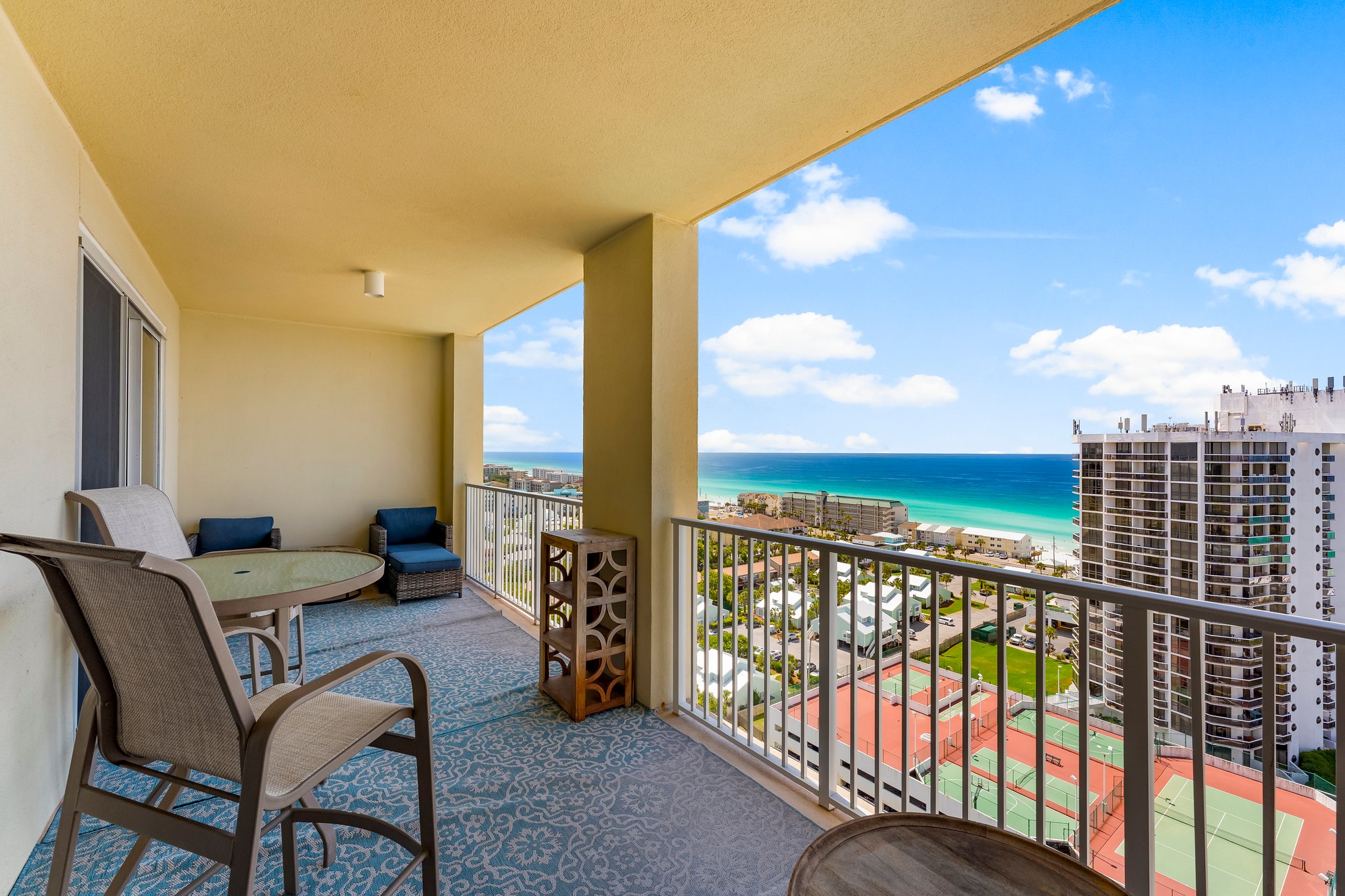 Enjoy all the amenities of the beautiful Seascape Resort and amazing views from this 16th floor modern condo at Ariel Dunes1! With views of the Choctawhatchee Bay and 18-hole golf course from the front door and spectacular views of the Emerald Coast and Stewart Lake from the back door you may never want to leave. This newly remodeled 2 bedroom, 2 bath condo has it all and is perfect for the kids to have their own space. This spacious floor plan has 9-foot tall ceilings with 8-foot tall sliding glass doors for ocean views from both the living room and master suite. This eighth floor condo (1602), in Ariel Dunes I, features one of the best views in the building with miles of pristine beach on full dispay from the balcony! A very short walk to a private beach and you will be relaxing in the sand. This condo sleeps 4 with a king size bed in the master bedroom and king size bed in the guest bedroom. There are LCD TVs in the master bedroom, guest bedroom and living room. Condo comes with in unit washer/dryer, wifi, cable TV, and fitness room access. Guests booking through our website also have the option for Pack' N play rental.