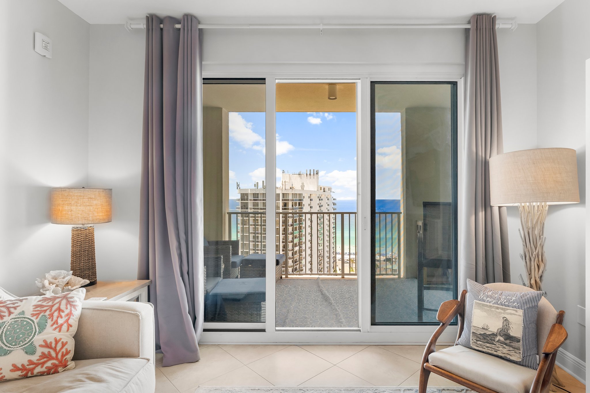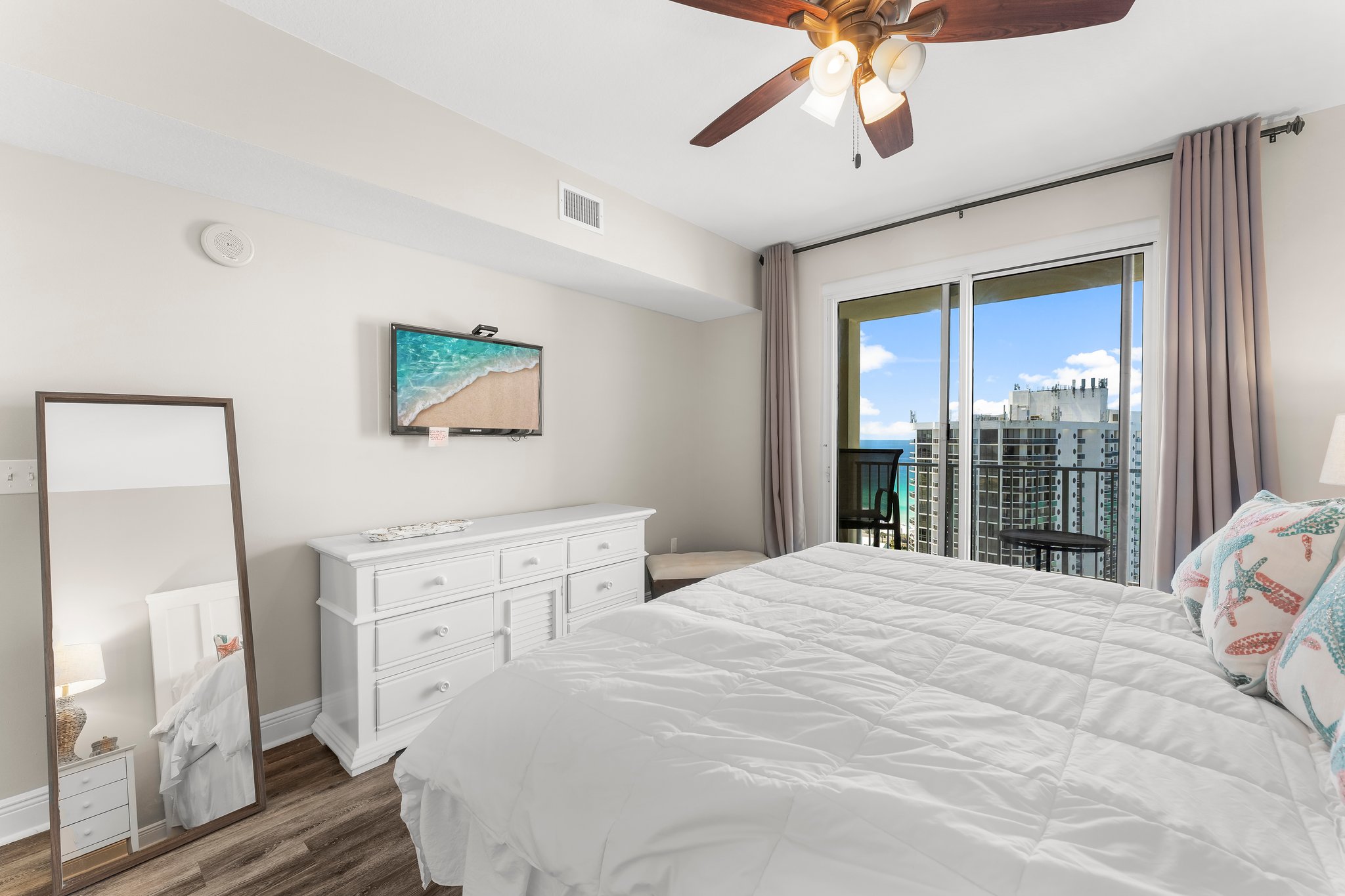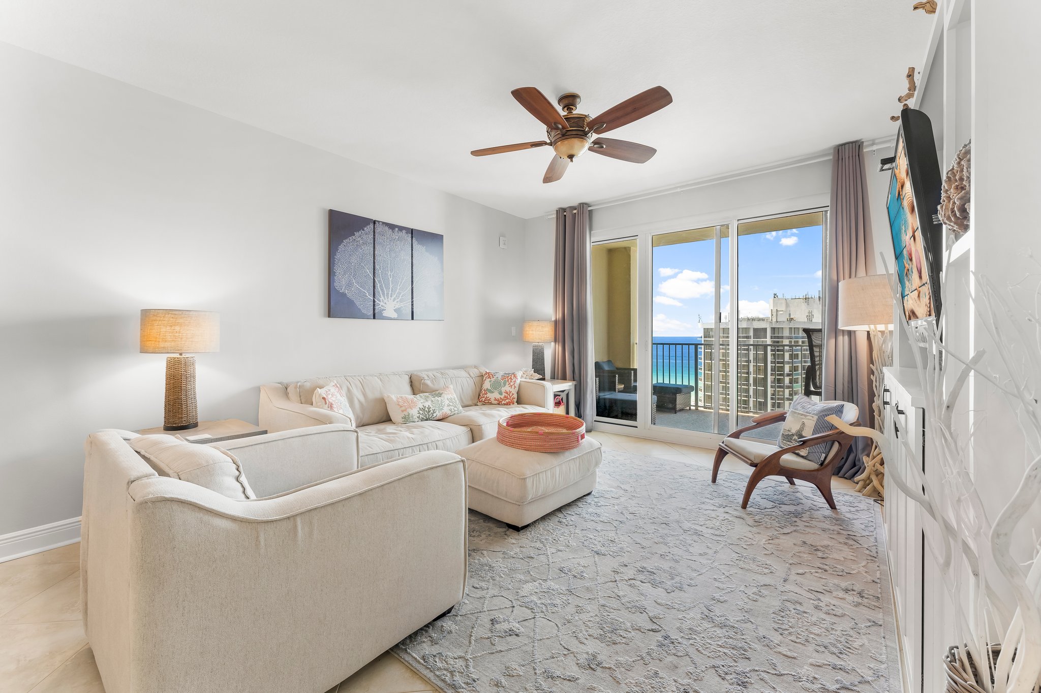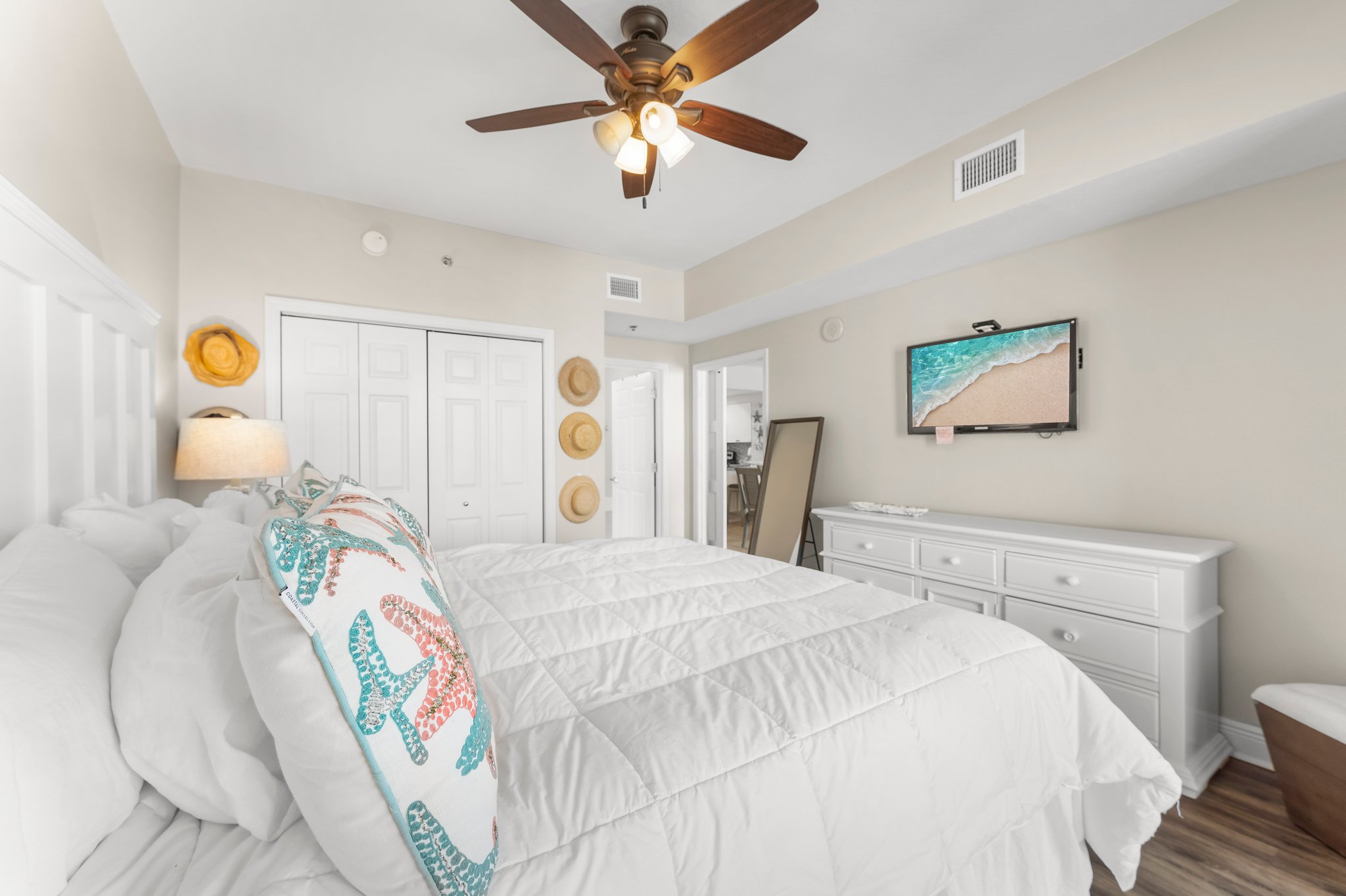 Enjoy all the amenities of the beautiful Seascape Resort and amazing views from this 16th floor modern condo at Ariel Dunes1! With views of the Choctawhatchee Bay and 18-hole golf course from the front door and spectacular views of the Emerald Coast and Stewart Lake from the back door you may never want to leave. This newly remodeled 2 bedroom, 2 bath condo has it all and is perfect for the kids to have their own space. This spacious floor plan has 9-foot tall ceilings with 8-foot tall sliding glass doors for ocean views from both the living room and master suite. This eighth floor condo (1602), in Ariel Dunes I, features one of the best views in the building with miles of pristine beach on full dispay from the balcony! A very short walk to a private beach and you will be relaxing in the sand. This condo sleeps 4 with a king size bed in the master bedroom and king size bed in the guest bedroom. There are LCD TVs in the master bedroom, guest bedroom and living room. Condo comes with in unit washer/dryer, wifi, cable TV, and fitness room access. Guests booking through our website also have the option for Pack' N play rental.