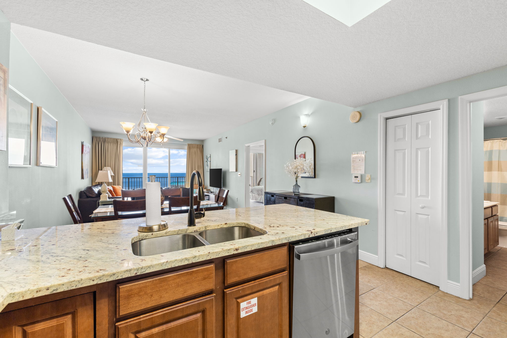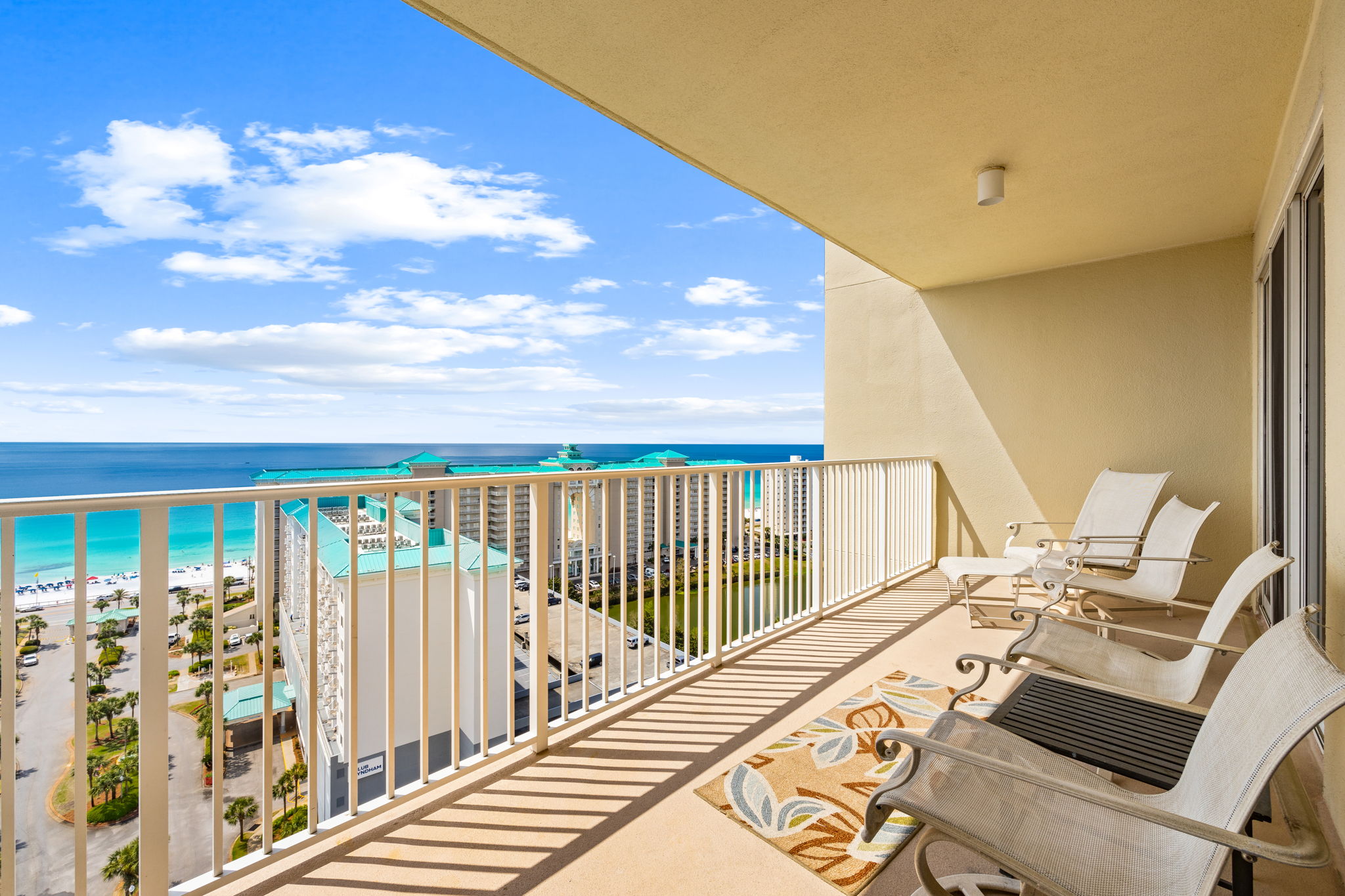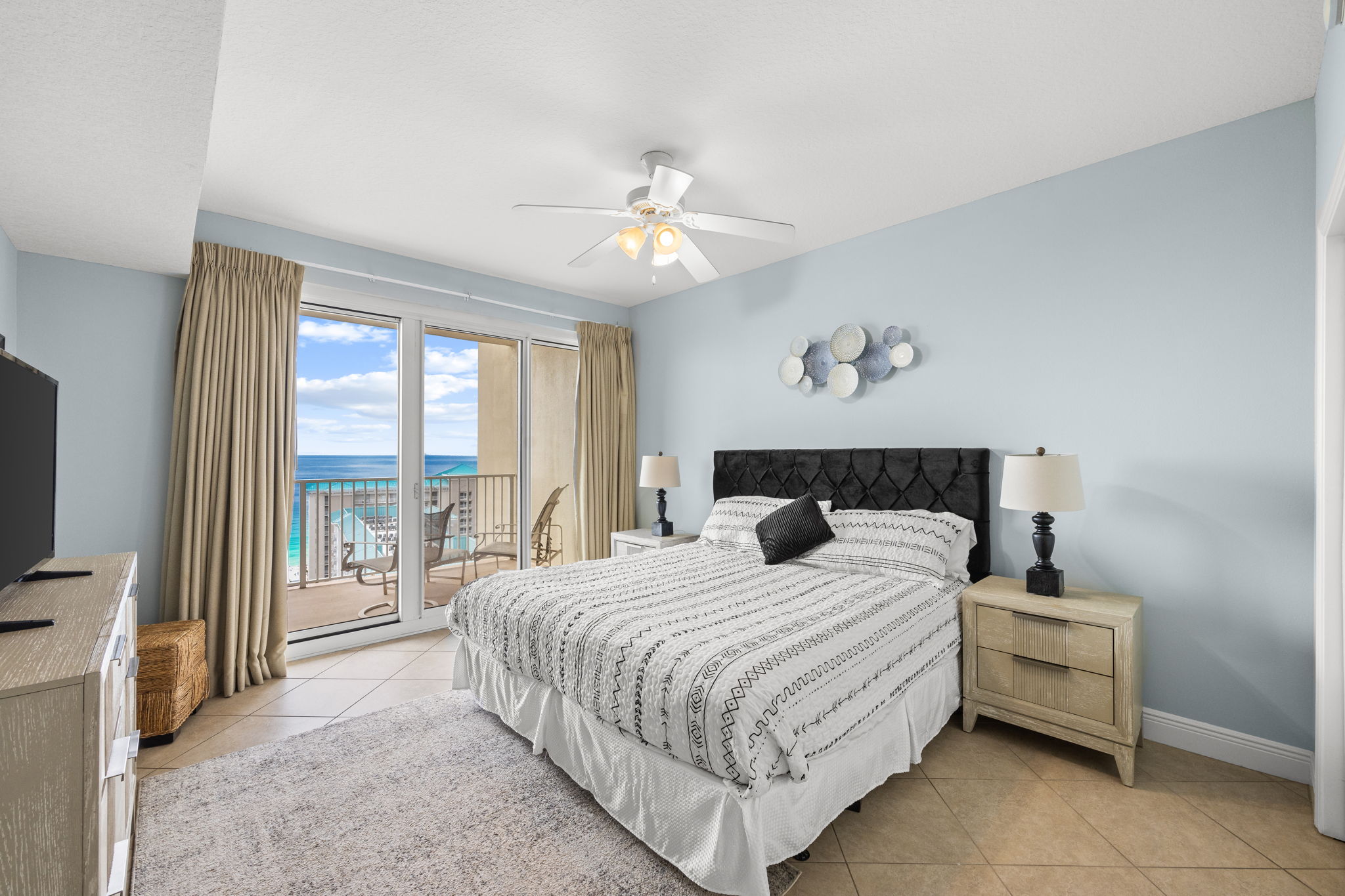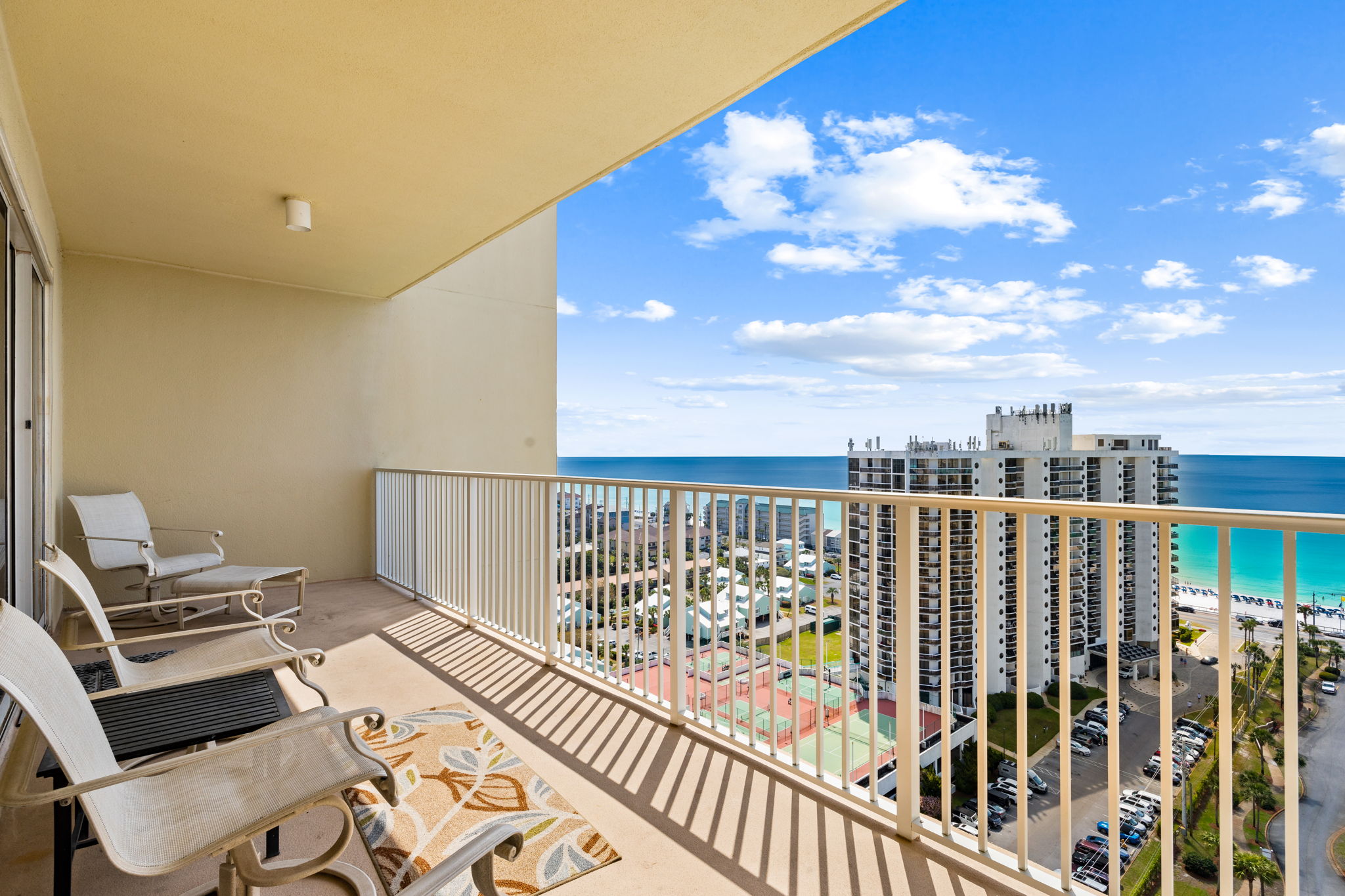 Enjoy all the amenities of the beautiful Seascape Resort and amazing views from this 17th floor condo at Ariel Dunes1! With views of the Choctawhatchee Bay and 18-hole golf course from the front door and spectacular views of the Emerald Coast and Stewart Lake from the back door you may never want to leave. This newly remodeled 2 bedroom, 2 bath condo has it all and is perfect for the kids to have their own space. This spacious floor plan has 9-foot tall ceilings with 8-foot tall sliding glass doors for ocean views from both the living room and master suite. This fifteenth floor condo (1708) in Ariel Dunes I, offers one of the prime locations on Miramar Beach and one of the best views in the building. From your large private balcony, you can enjoy a beautiful view of the Emerald coast! A very short walk to a private beach and you will be relaxing in the sand. This condo sleeps 6 with a king bed in the master bedroom, queen bed in the guest bedroom, and a pull-out sofa in the living room. There are LCD TVs in the master bedroom, guest bedroom and living room. Condo comes with in unit washer/dryer, wifi, cable TV, and fitness room access.