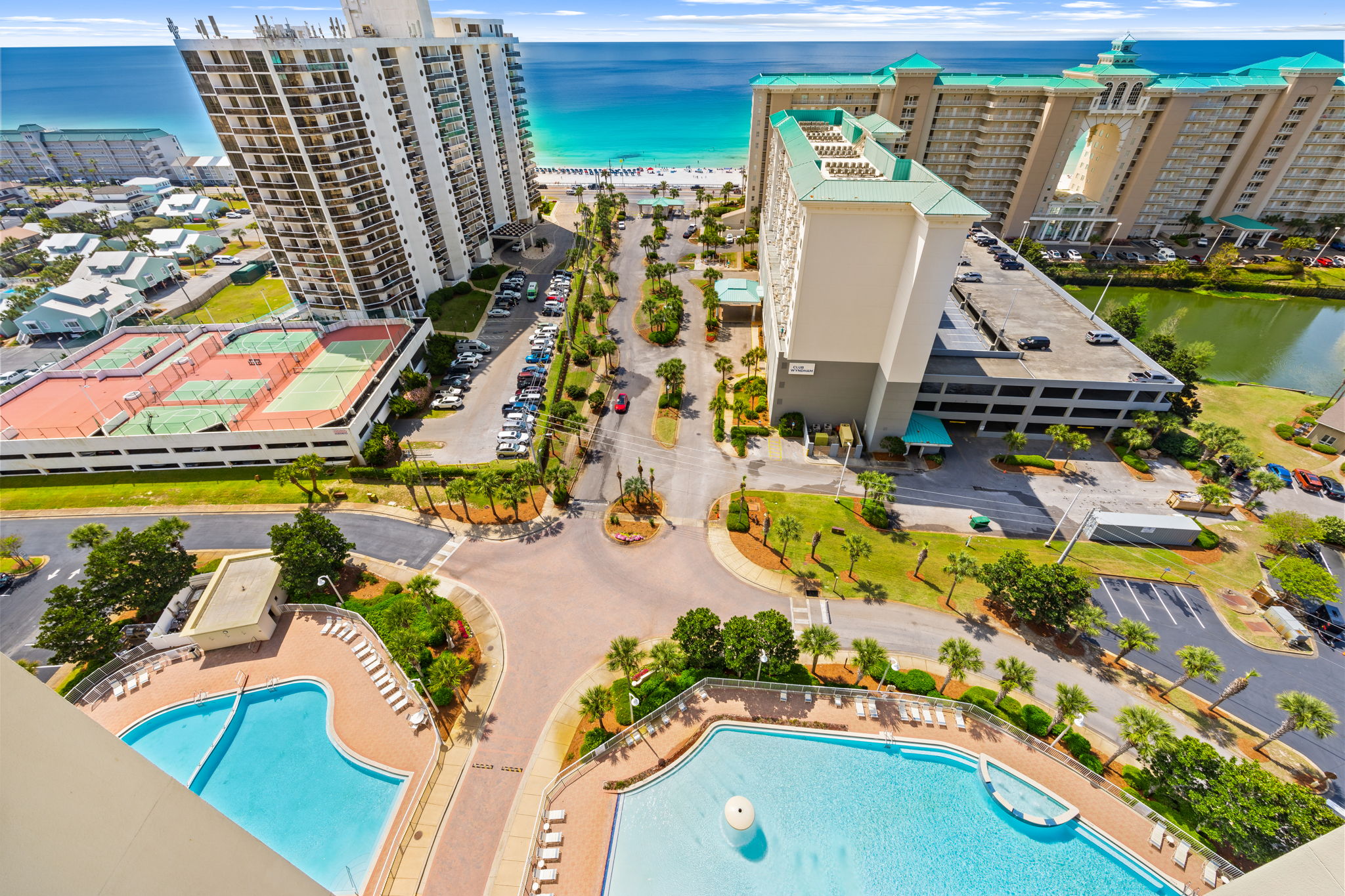 Ariel Dunes provides all Seascape resorts amenities including: 18 hole golf course, 3 full size pools, basketball courts, tennis courts, pickleball courts, and full service Cabana Café restaurant with live entertainment.