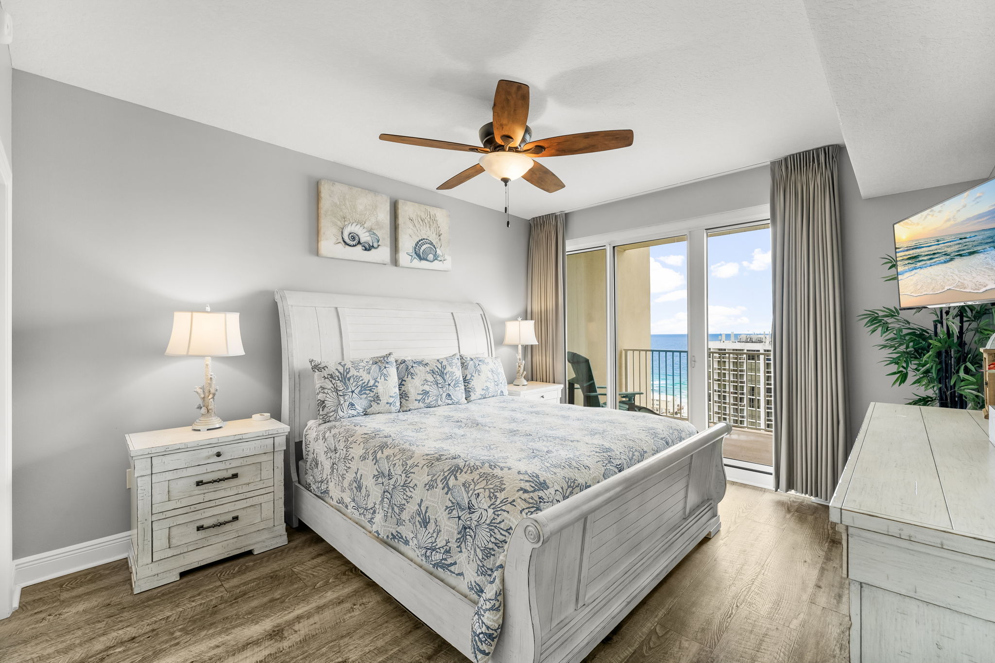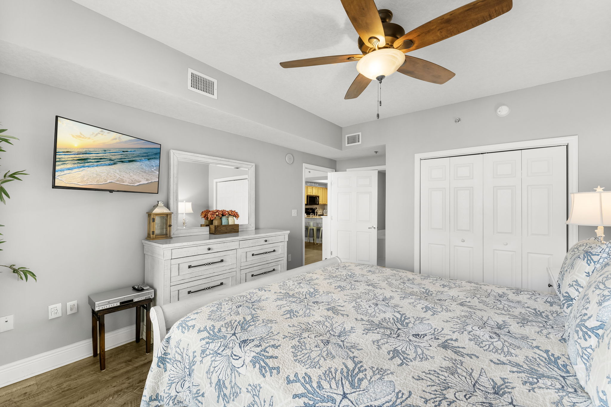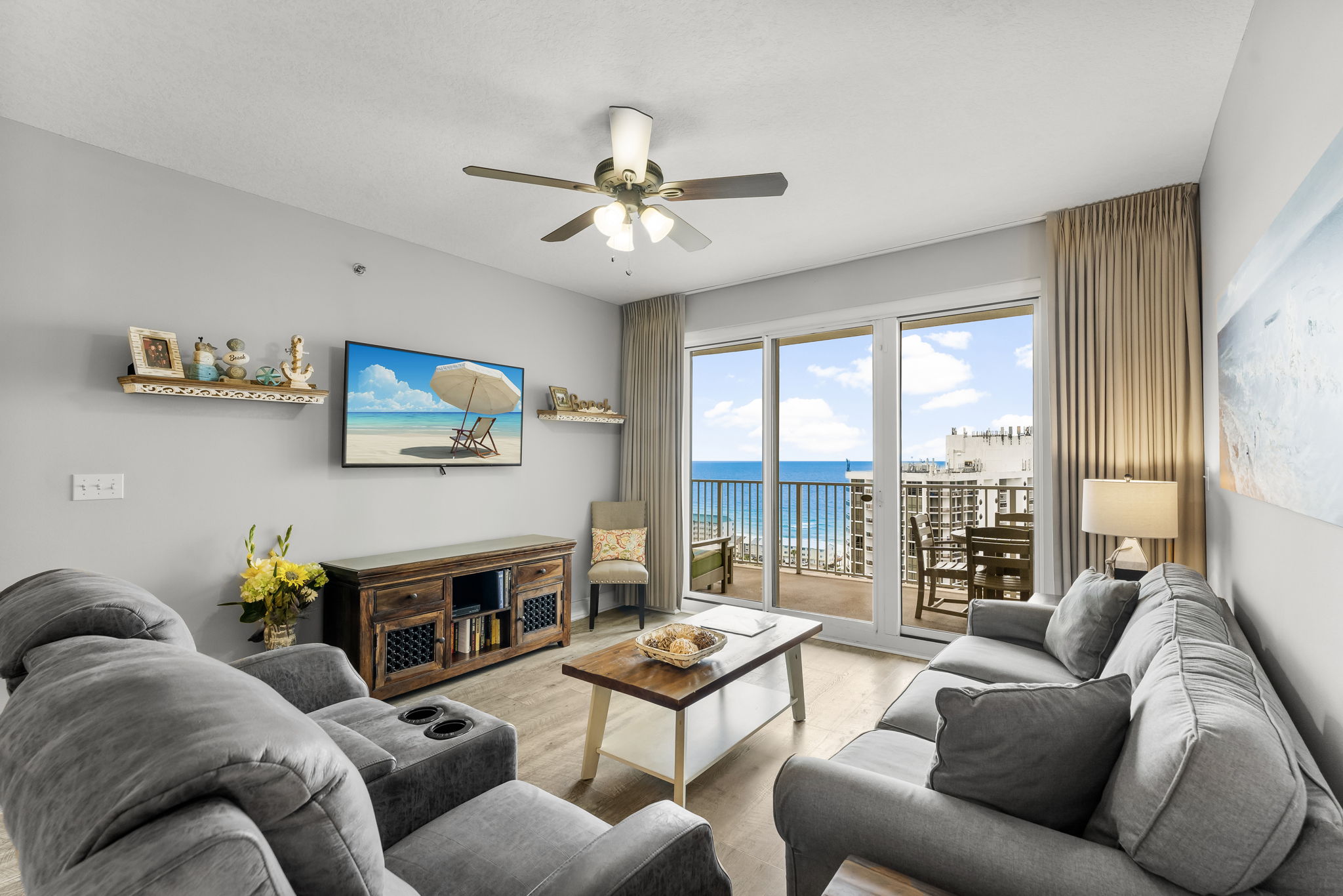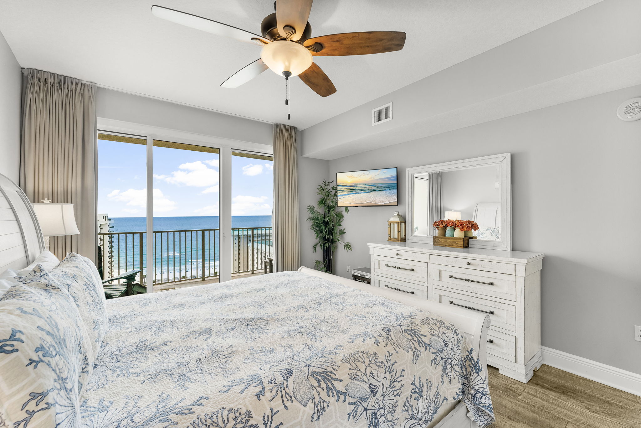 Enjoy all the amenities of the beautiful Seascape Resort and amazing views from this 18th floor modern condo at Ariel Dunes1! With views of the Choctawhatchee Bay and 18-hole golf course from the front door and spectacular views of the Emerald Coast and Stewart Lake from the back door you may never want to leave. This newly remodeled 2 bedroom, 2 bath condo has it all and is perfect for the kids to have their own space. This spacious floor plan has 9-foot tall ceilings with 8-foot tall sliding glass doors for ocean views from both the living room and master suite. This eightteenth floor condo (1803), in Ariel Dunes I, features one of the best views in the building with miles of pristine beach on full display from the balcony! A very short walk to a private beach and you will be relaxing in the sand. This condo sleeps 6 with a king size bed in the master bedroom, queen size bed in the guest bedroom, and a sleeper sofa in the living room. There are LCD TVs in the master bedroom, guest bedroom and living room. Condo comes with in unit washer/dryer, wifi, cable TV, and fitness room access. Guests booking through our website also have the option for Pack' N play rental.