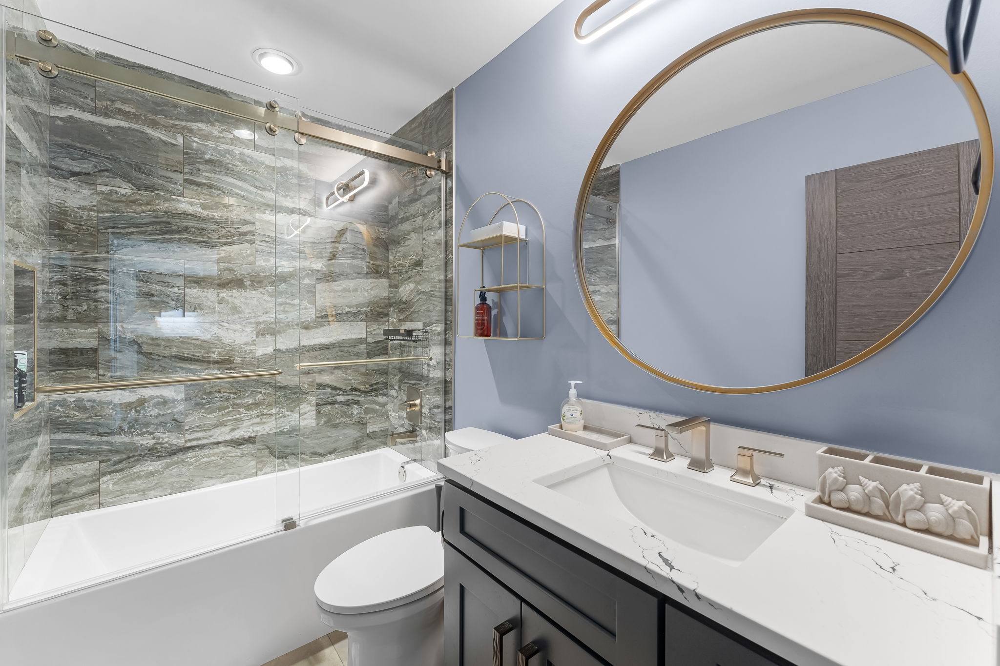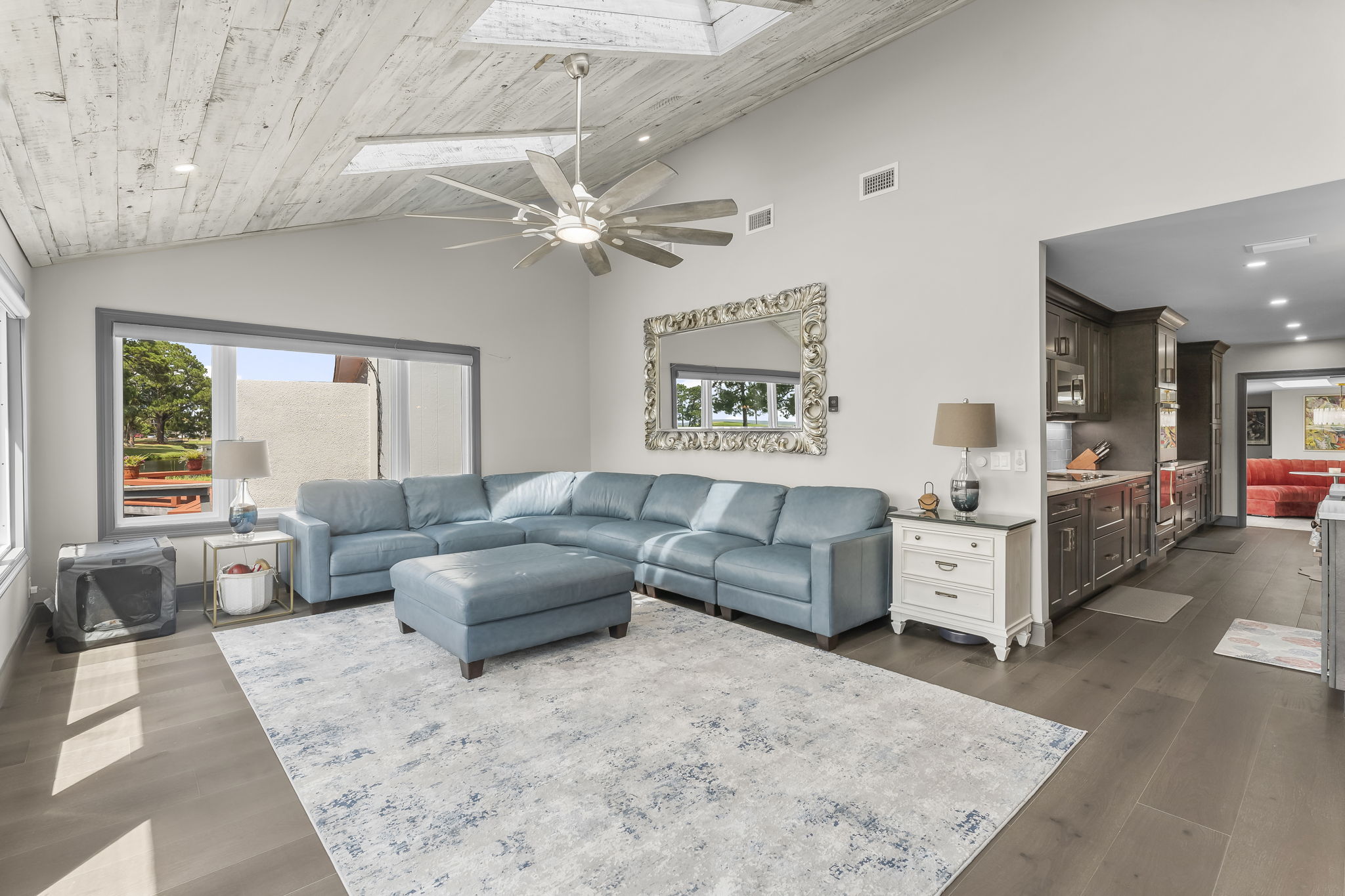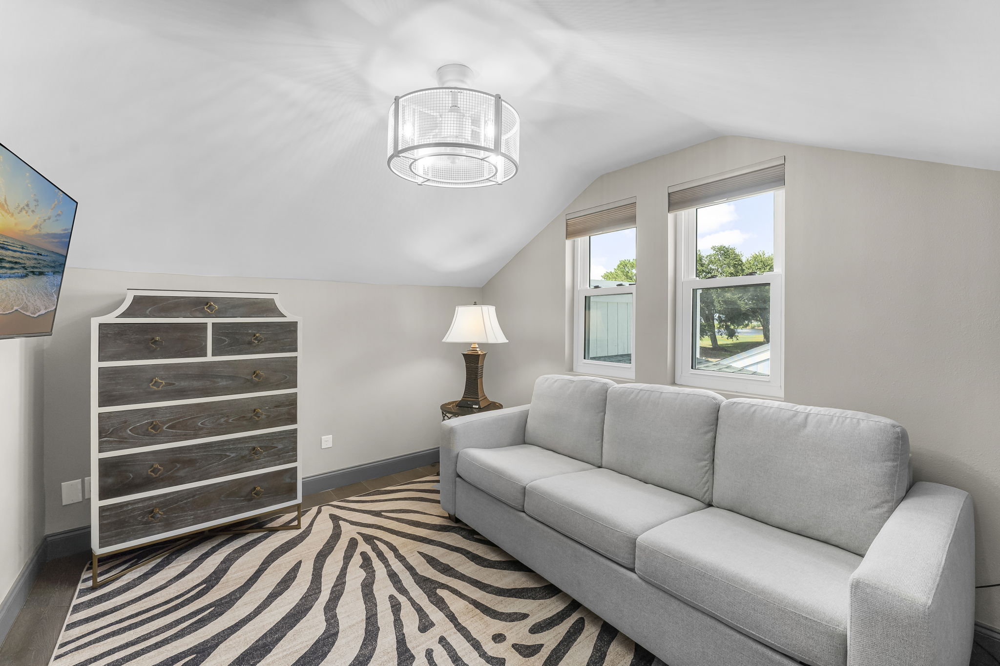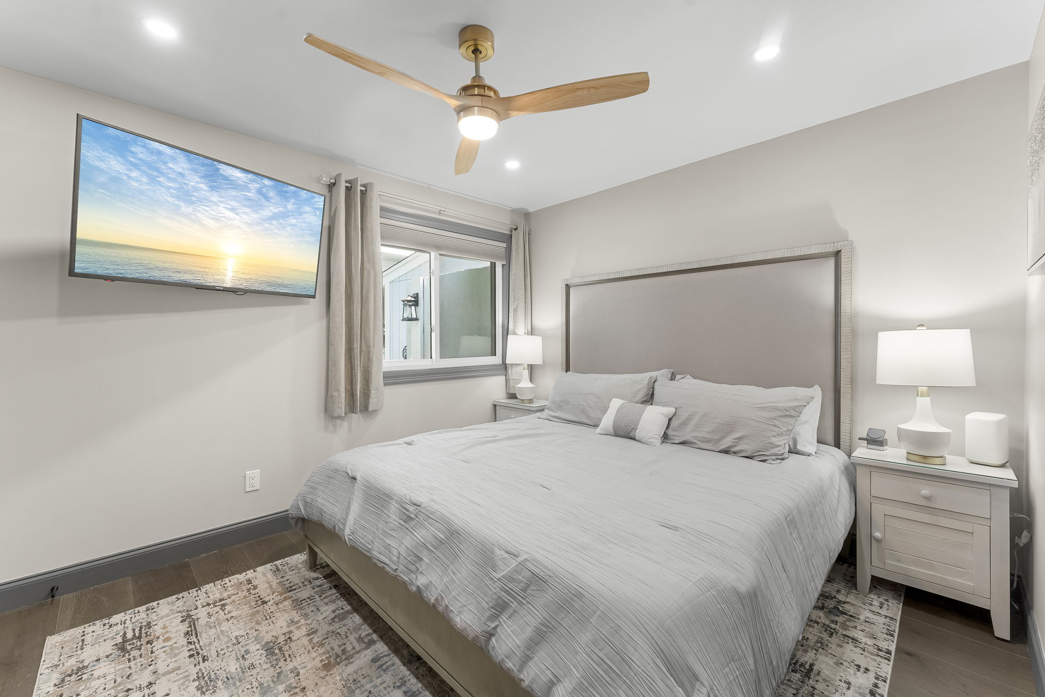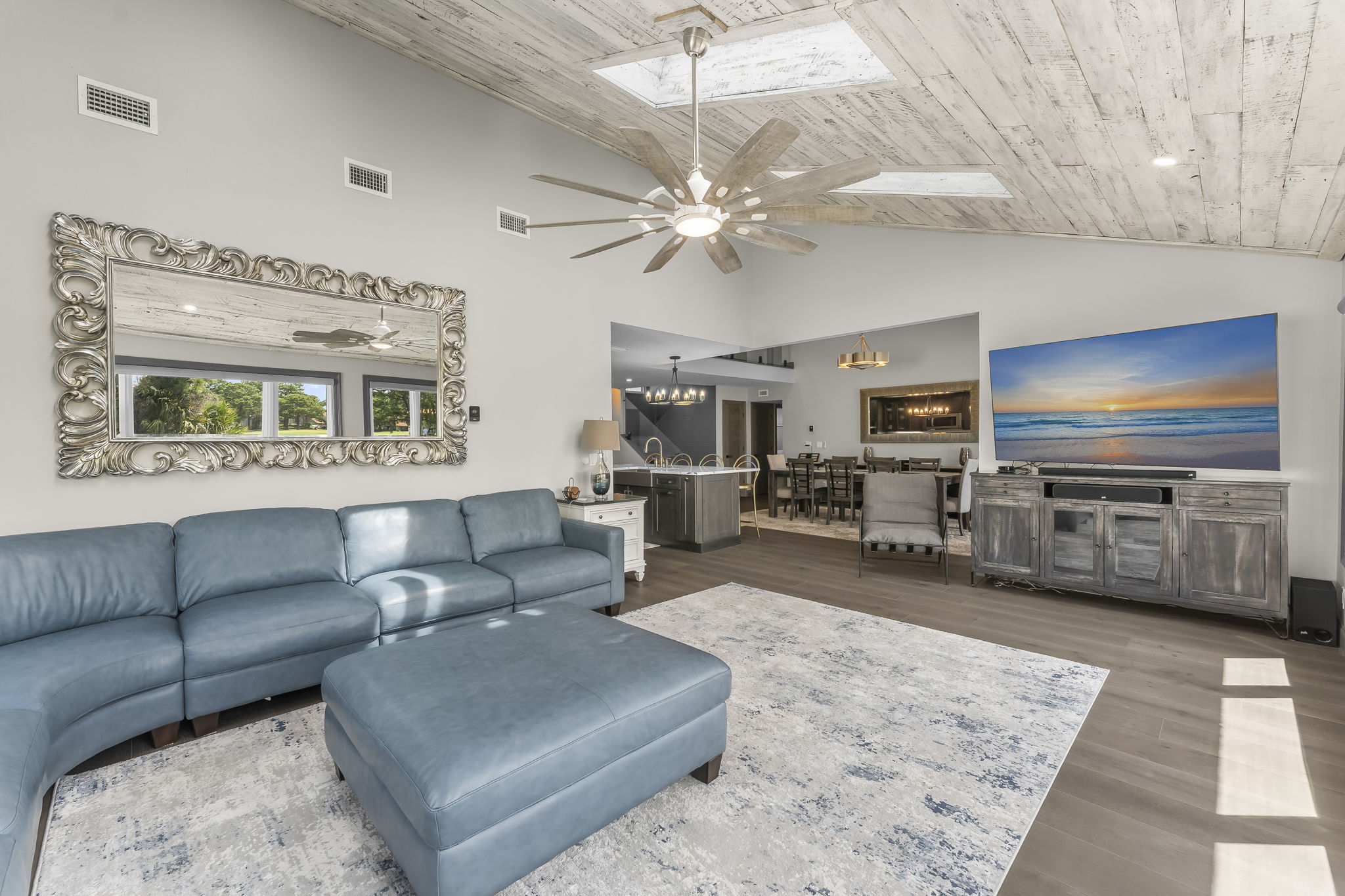 Spacious Living Areas: The open-concept living and dining area is perfect for gatherings, featuring comfortable seating, a flat-screen TV, and abundant natural light.