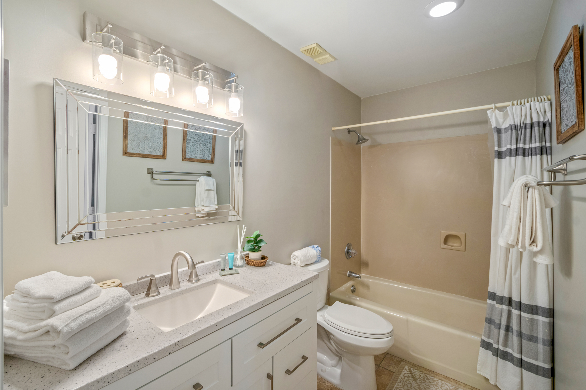 Our condo felt like a true home away from home. The cleaning crew could have done a better job with the bathrooms, as the downstairs toilet had a black ring around it that I had to clean myself. However, the other bathrooms were spotless. One suggestion for the master bedroom shower would be to add a safety bar. The master bed was very comfortable, but the couch wasn’t as cozy, though it was manageable. Some of the couch pillows need replacing due to feathers coming out, which I was constantly picking up from the floor. The condo had all the amenities we could have wanted—plenty of towels, dishes, cups, glasses, etc. It was also conveniently close to the boardwalk parking lot. I had an Amazon package delivered to the condo, and the postmaster initially placed it in the residents’ mailbox instead of at the front door as requested. After notifying the manager, he kept an eye out, and the package was delivered to the front door the next day. Big thanks to t- Anonymous from Strasburg, Posted: 10/6/2025Thank you for your feedback! We are glad we were able to help you get your package. We would have been happy to send the cleaners back in to address your one issue, please feel free to reach out next time!- 3D Beach Rentals staff, Posted: