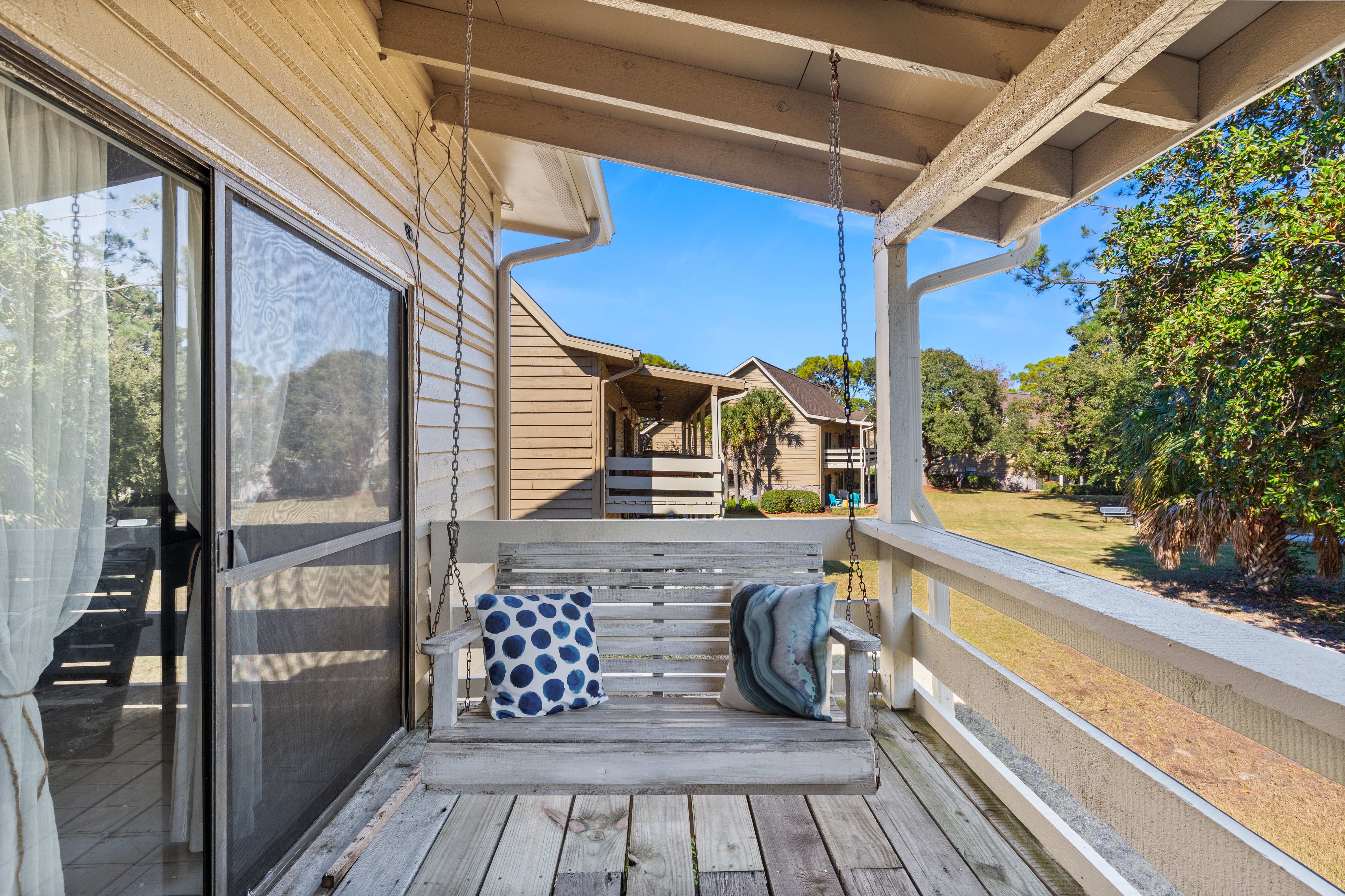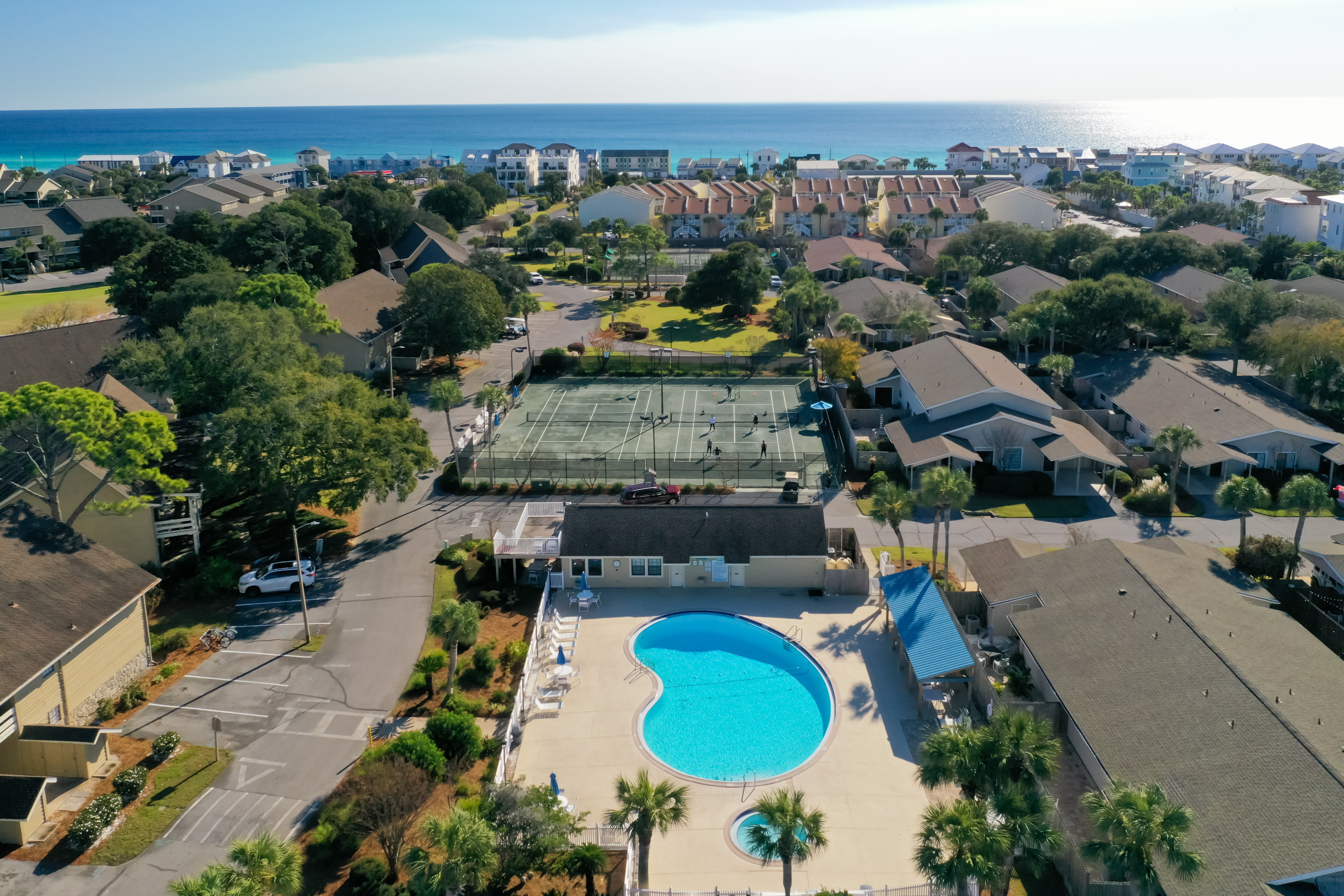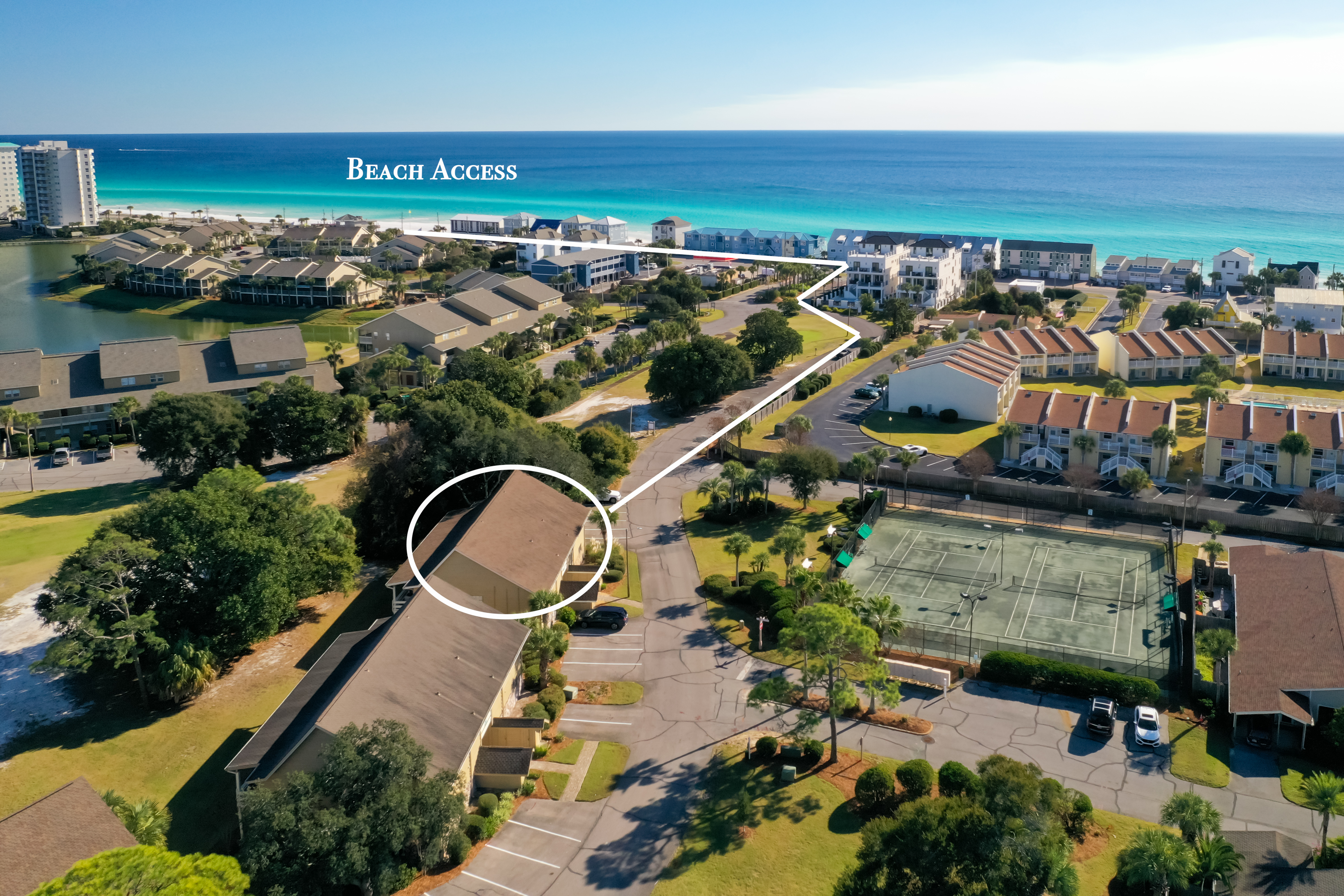 Enjoy the quiet, peaceful setting of this Golf Course Villa that is just minutes away from the beautiful white sand of Miramar Beach! The unit is completely updated with all new appliances including washer and dryer in unit. It features two bedrooms with a king size bed in the master and two twins in the guest bedroom, plus a full size pull out sleeper sofa in the living room. The high ceilings in the living and dining room add to the spacious feel to these beautiful areas with a breathtaking view of Seascape Resort. Enjoy your morning coffee or evening refreshments on the large balcony. Just a 10 minute walk and you will find yourself at the beach - with your toes in the sand. There is onsite Golf, Tennis, Pickleball, Dining, Swimming Pools, Water Sports, Arcade, Bike Rentals and the largest, pristine and privately – owned beach in the Destin/Miramar Beach, Florida area. When you book your vacation rental with 3D Beach Rentals directly, you have the option to add beach a Pak N Play. Seascape Resort is located between Destin and 30A, within close proximity to world-class shopping, dining and family entertainment.