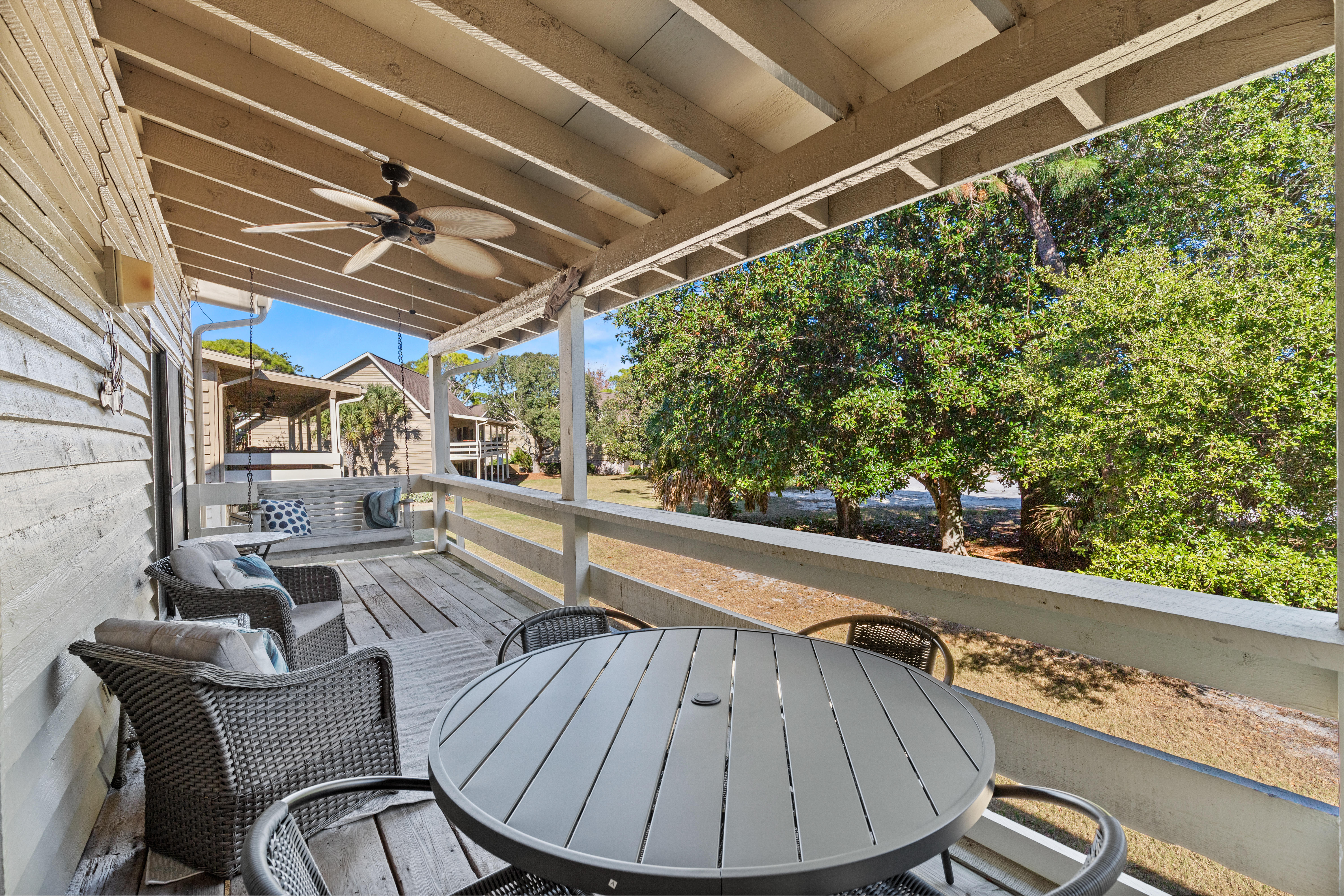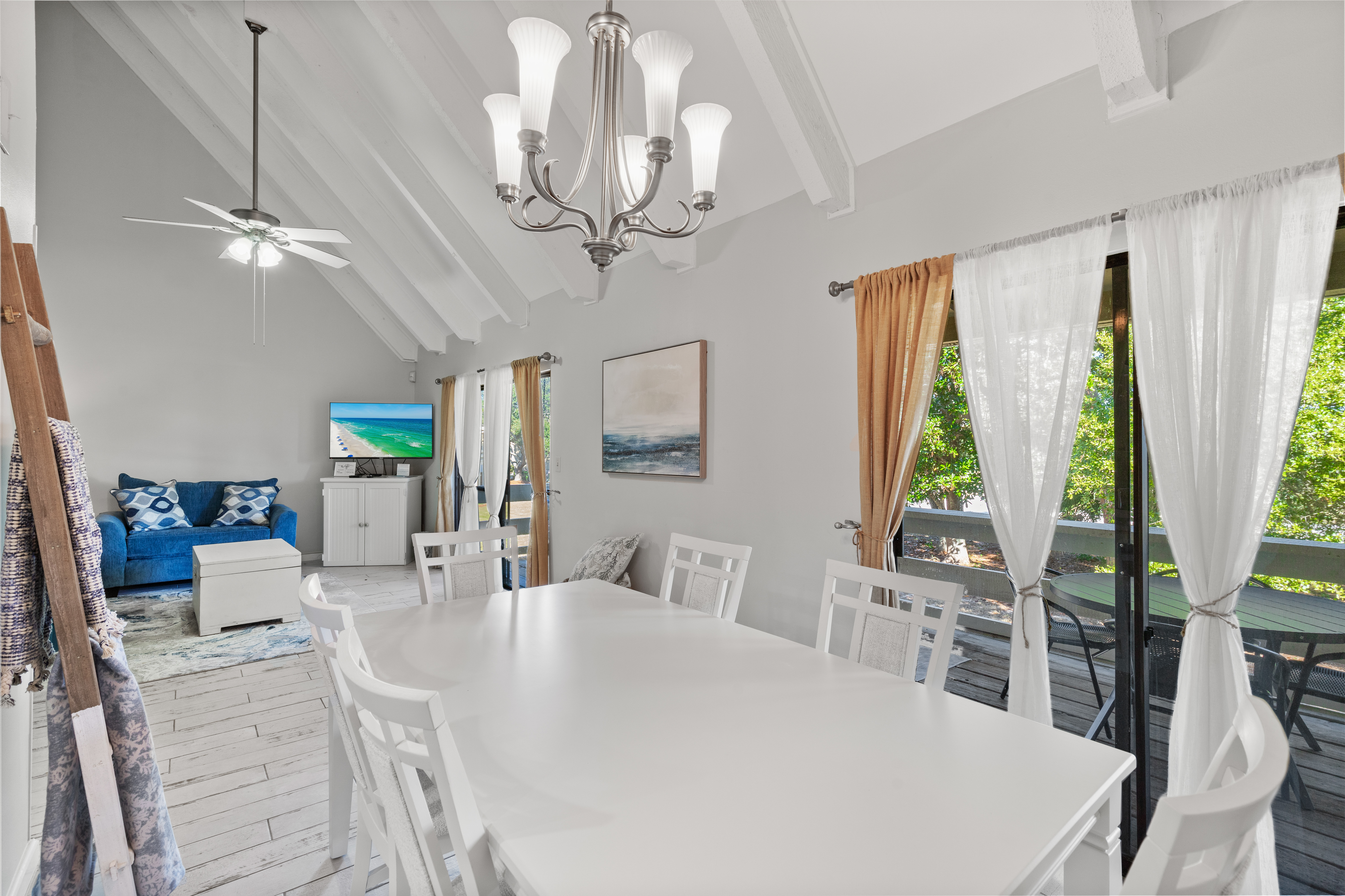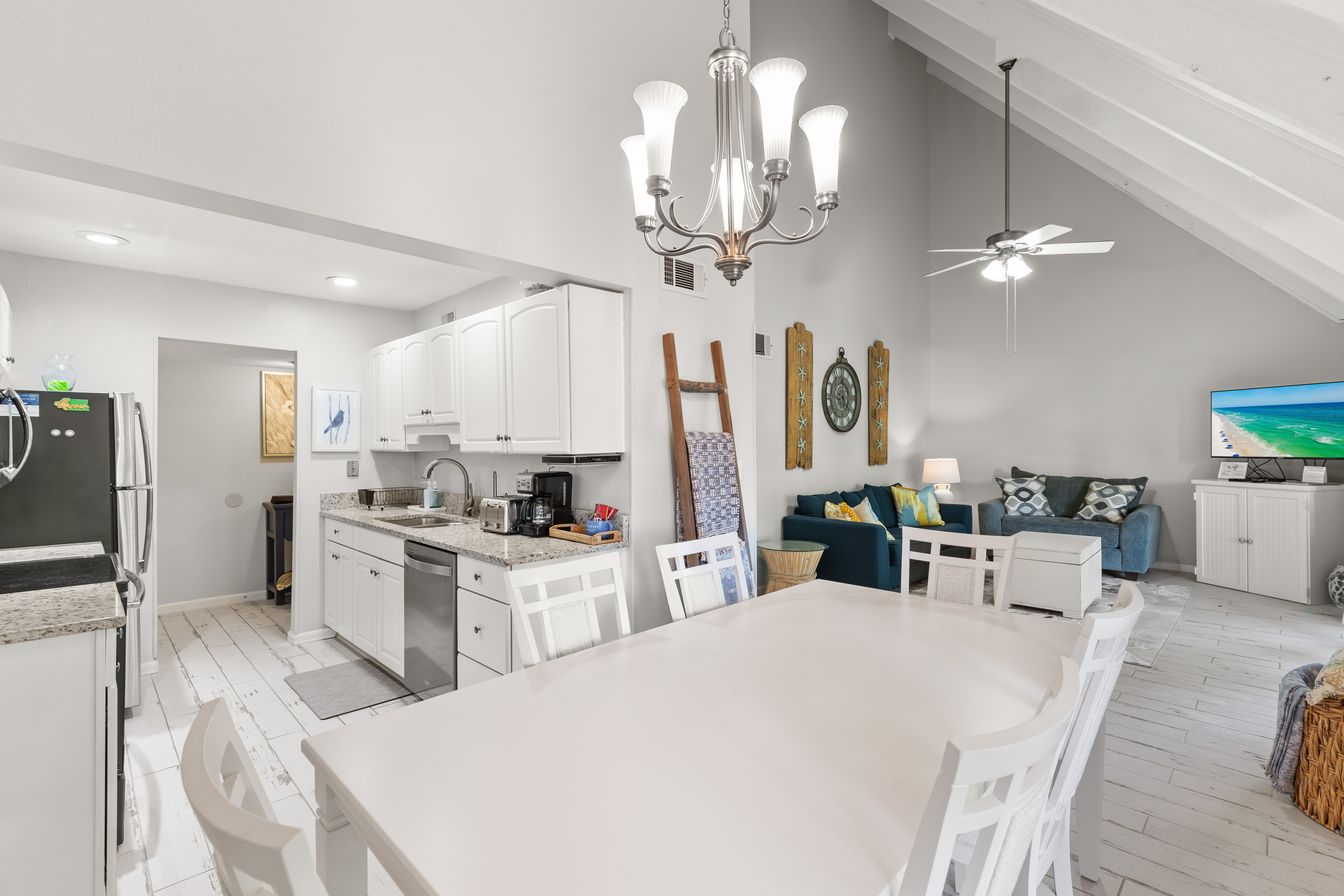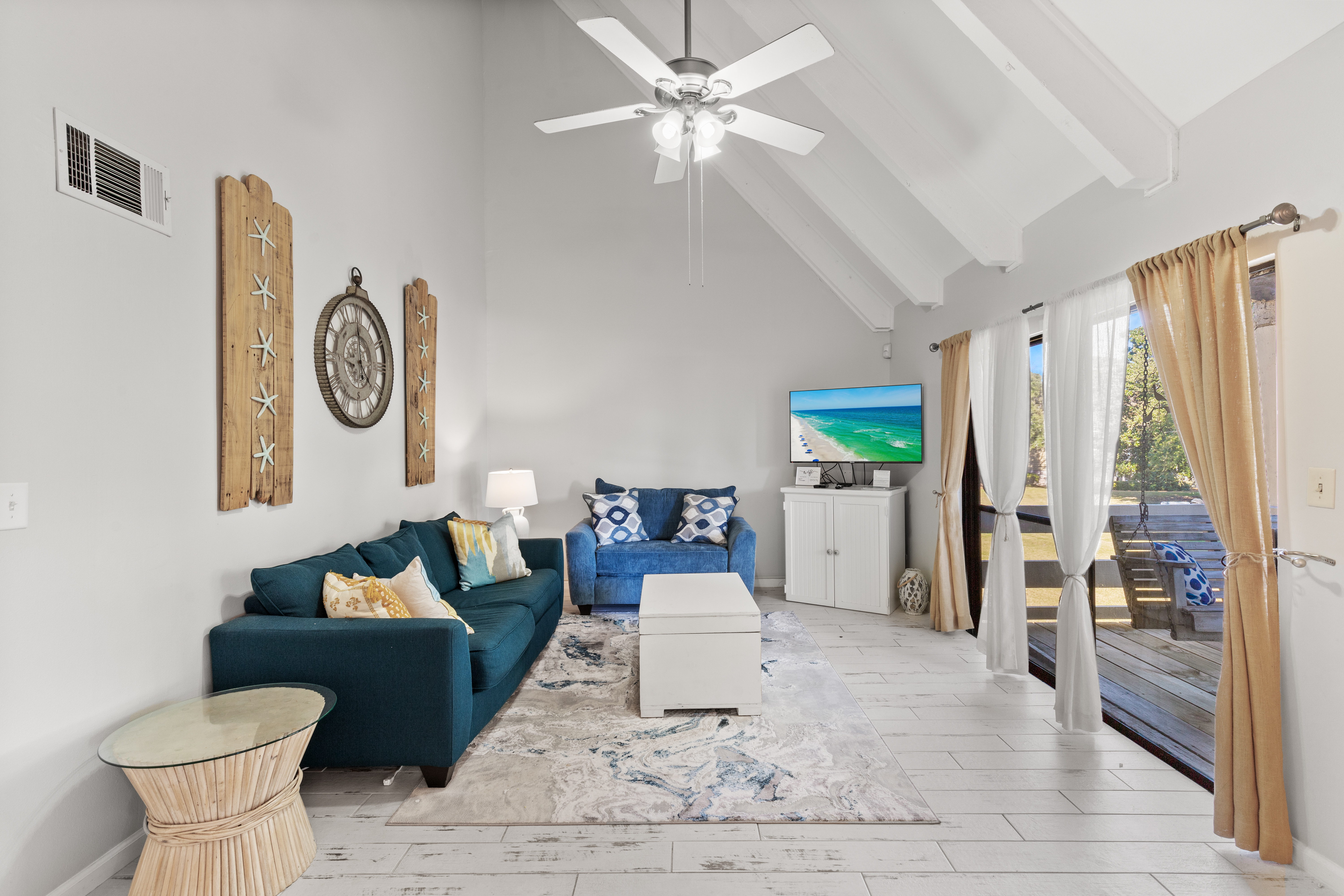 Enjoy the quiet, peaceful setting of this Golf Course Villa that is just minutes away from the beautiful white sand of Miramar Beach! The unit is completely updated with all new appliances including washer and dryer in unit. It features two bedrooms with a king size bed in the master and two twins in the guest bedroom, plus a full size pull out sleeper sofa in the living room. The high ceilings in the living and dining room add to the spacious feel to these beautiful areas with a breathtaking view of Seascape Resort. Enjoy your morning coffee or evening refreshments on the large balcony. Just a 10 minute walk and you will find yourself at the beach - with your toes in the sand. There is onsite Golf, Tennis, Pickleball, Dining, Swimming Pools, Water Sports, Arcade, Bike Rentals and the largest, pristine and privately – owned beach in the Destin/Miramar Beach, Florida area. When you book your vacation rental with 3D Beach Rentals directly, you have the option to add beach a Pak N Play. Seascape Resort is located between Destin and 30A, within close proximity to world-class shopping, dining and family entertainment.